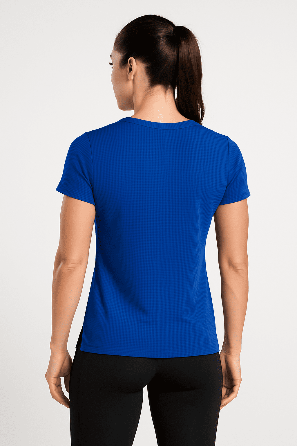 Camiseta fitness feminina adulta confeccionada em tecido respirável e de alta qualidade, garantindo conforto e liberdade de movimento. Ideal para academia, corrida e atividades ao ar livre.