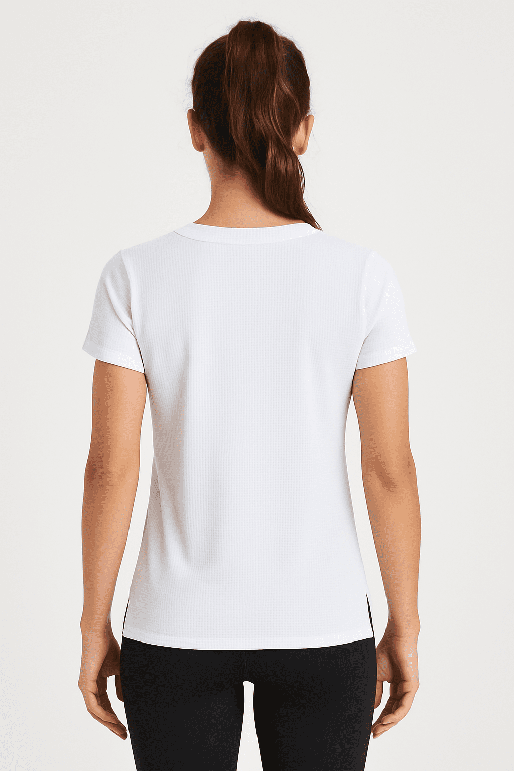 Camiseta fitness feminina adulta confeccionada em tecido respirável e de alta qualidade, garantindo conforto e liberdade de movimento. Ideal para academia, corrida e atividades ao ar livre.