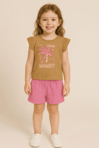Peça infantil confeccionada em tecido de qualidade, com modelagem prática que garante conforto e liberdade de movimento. Perfeita para brincar, passear e usar em diferentes ocasiões.