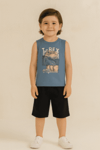Peça infantil confeccionada em tecido de qualidade, com modelagem prática que garante conforto e liberdade de movimento. Perfeita para brincar, passear e usar em diferentes ocasiões.