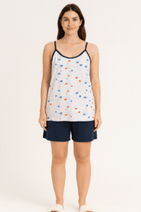 Pijama feminino adulto confeccionado em tecido leve e macio, proporcionando conforto e bem-estar durante o sono. Modelagem que se ajusta ao corpo, ideal para noites tranquilas e aconchegantes.